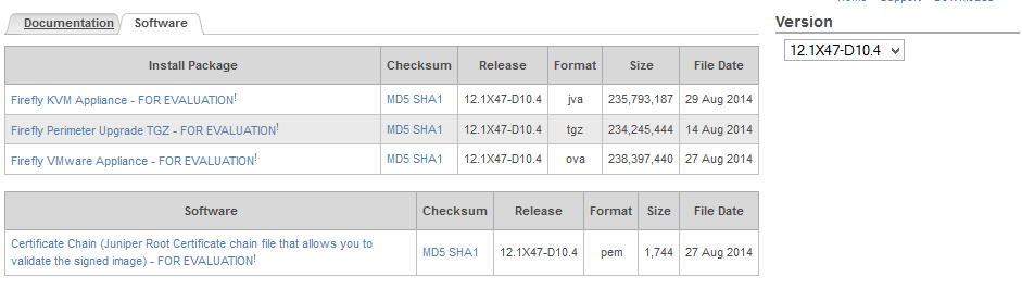 Deux cas de téléchargements existent, votre licence est valide et est liée à votre compte ou bien vous souhaitez simplement essayer le produit en version d’évaluation durant soixante jours. Chacune de ses possibilités requièrent un compte valide Juniper.