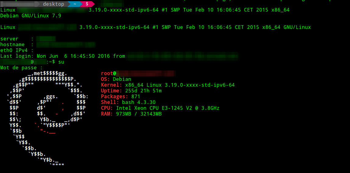 apt-get update && apt-get upgradeLe processus est long et des questions sont posées par l’OS (pour consulter mon résultat : le voici dans un fichier).