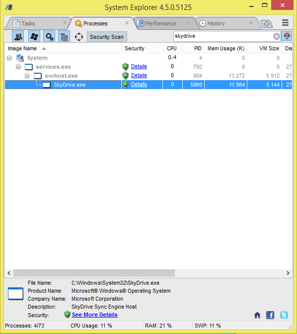 Le logiciel est vraiment intéressant car il vérifie si le processus est sain et explique son origine. On peut aussi : supprimer, ajouter des priorités, voir les ressources système utilisées. Visitez le file Database de System Explorer pour plus d’informations sur vos processus.