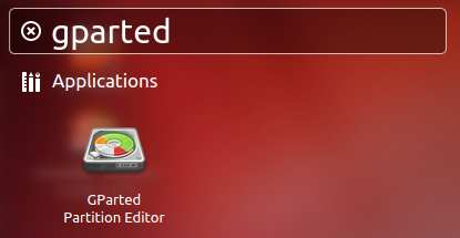 Appuyer sur la touche « Super » ou cliquer sur le lanceur en haut à gauche puis rechercher « gparted« :