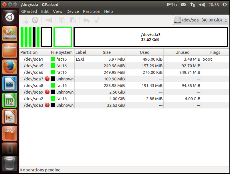 sda1 est utilisé pour le démarrage du système ESXi 5.x.