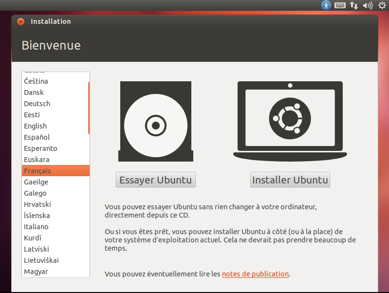 Vous devriez voir apparaître ceci et cliquez sur « Essayer Ubuntu » :