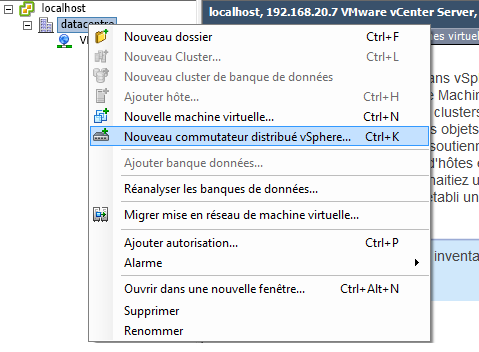 Allons dans la rubrique Page d’accueil/Inventaire/Mise en réseau puis Nouveau commutateur Distribué… :