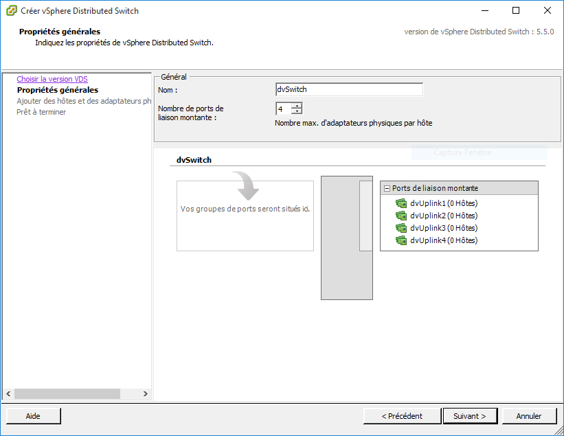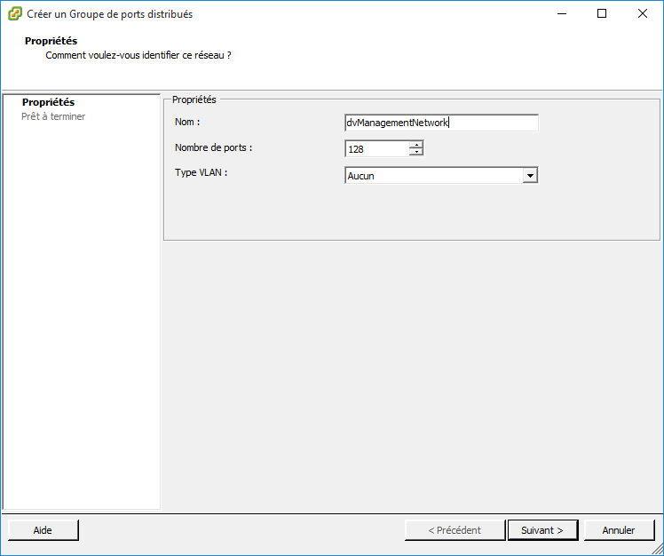 Afin de créer nos différents dvgroups cliquons sur Nouveau groupe ports voici un exemple (sans VLAN) :