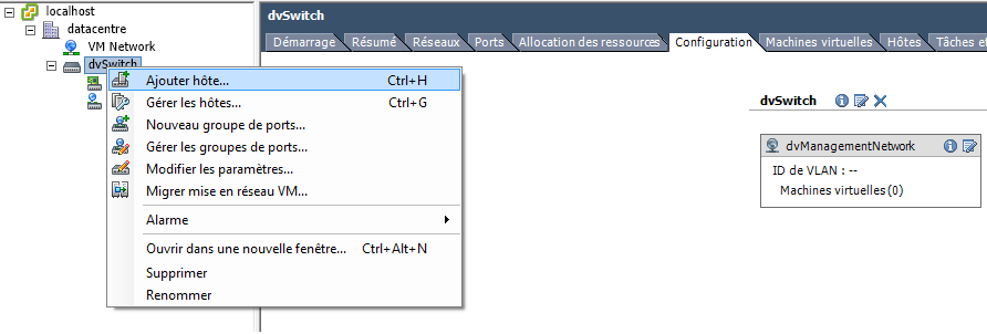 Une fois réalisé nous allons faire un ajout de nos hôtes dans le dvSwitch comme ceci :